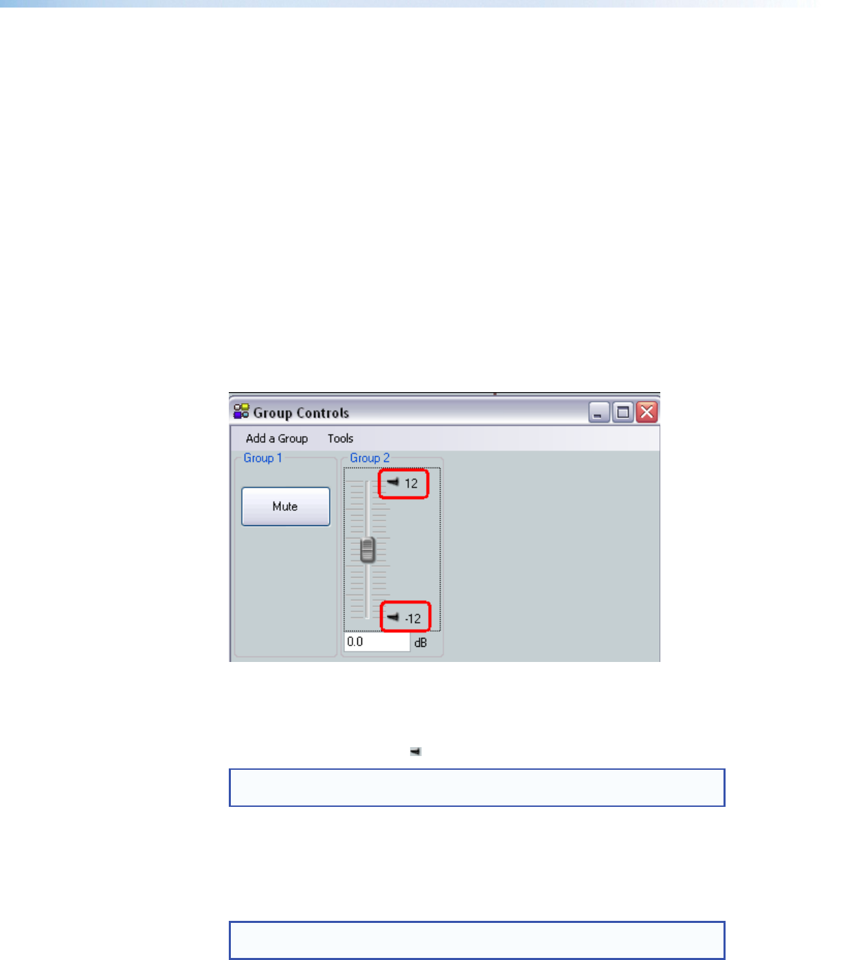 • Slide a group fader up and down to adjust all gain controls in the group.
